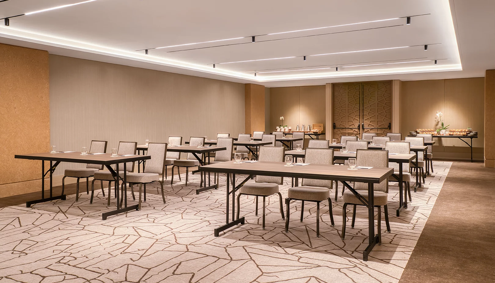 Celebre reuniones excepcionales en nuestros 11 sofisticados lugares diseñados para inspirar. Desde el elegante Real Ballroom hasta las elegantes salas de juntas, disfrute de tecnología de punta, planificación experta y catering de clase mundial. Ya sea una reunión de alto nivel o una boda lujosa, nuestros espacios preparan el escenario para momentos inolvidables y colaboraciones exitosas.